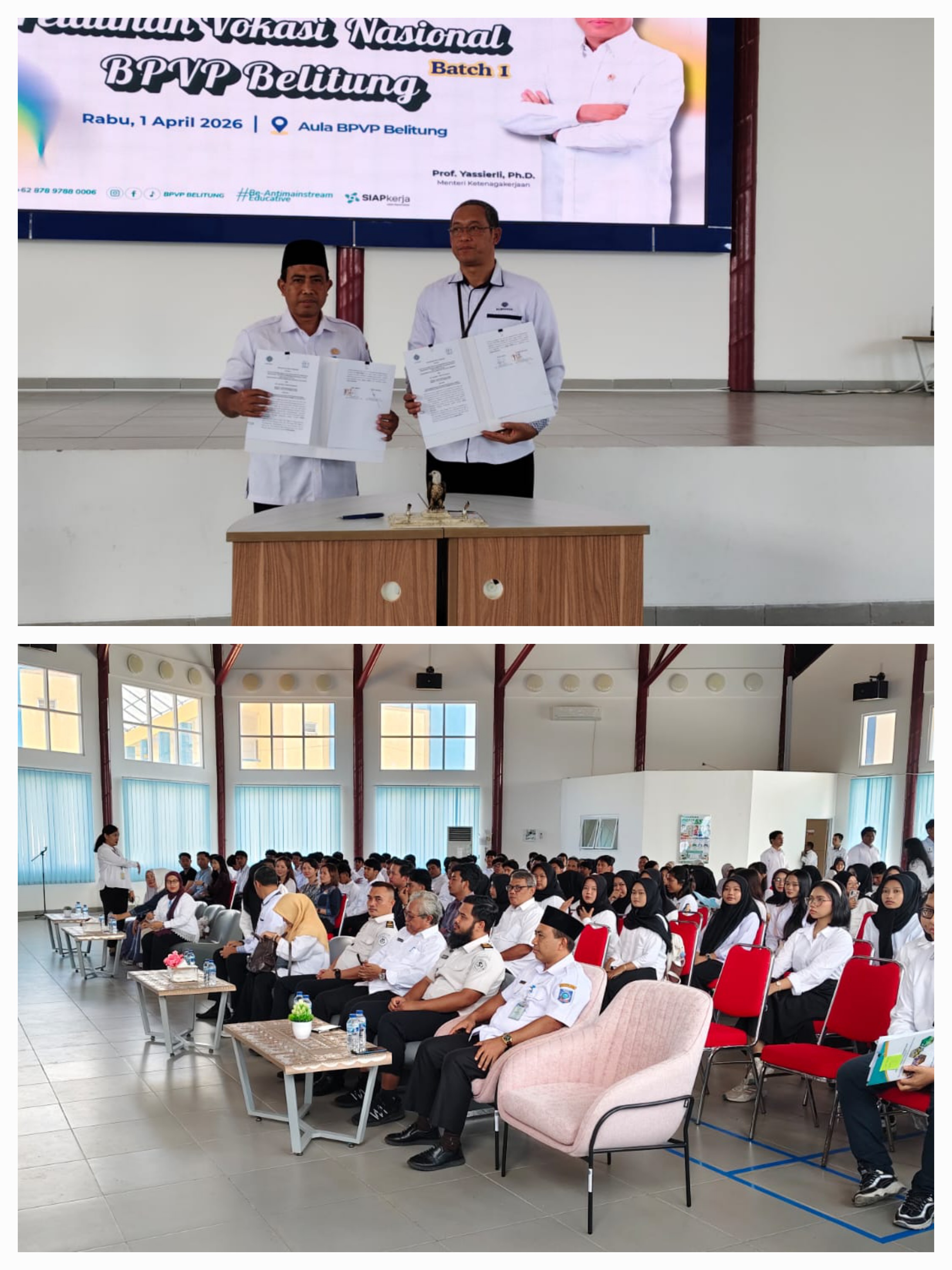 Desa Keciput kecamatan sijuk - Rabu 1 April 2026 bertempat di gedung aula BPVP Belitung Direktorat Jenderal Pembinaan Pelatihan Vokasi dan Produktivitas Balai Pelatihan Vokasi dan Produktivitas dilaksanakan pembukaan pelatihan dan Vokasi nasional bathc 1 yang di ikuti oleh 160 dari 15 paket kegiatan yang disediakan, peserta dari berbagai lulusan sekolah SMA, SMK ( Fresh Graduate) di Belitung, salah satu sekolah yang mengikuti pelatihan Vokasi nasional ini diantaranya SMA Negeri 2 Tanjungpandan…selengkapnya