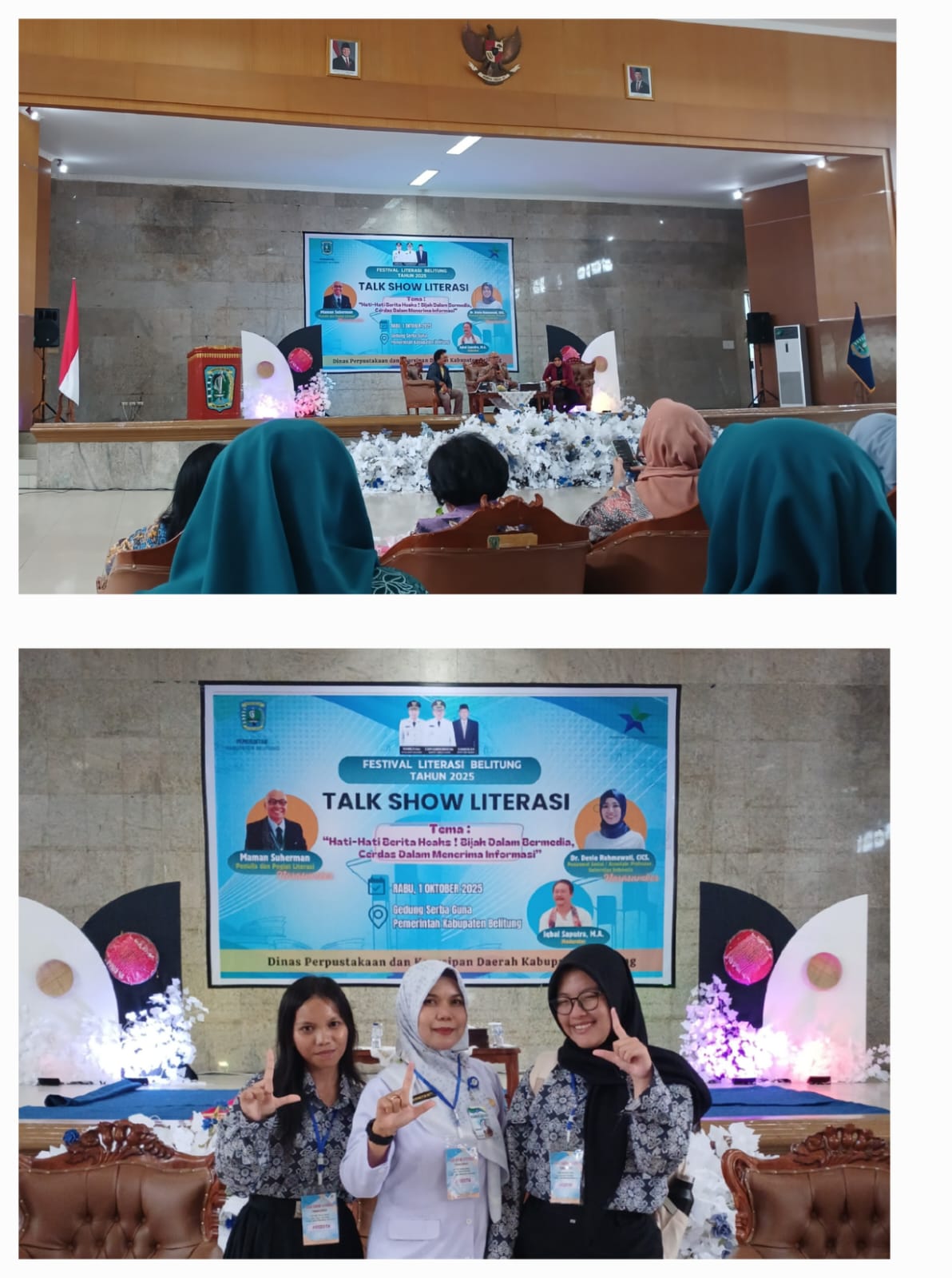 Tanjungpandan - Dalam rangka Festival Literasi Belitung tahun 2025 Dinas Perpustakaan dan Kearsipan Kabupaten Belitung. Acara yang diselenggarakan oleh Dinas Perpustakaan dan Kearsipan Daerah Kabupaten Belitung di adakan selama 5 hari mulai 1 Oktober 2025 sampai dengan 5 Oktober 2025 di pantai wisata Tanjungpendam,, salah satu diantaranya kegiatan "Talk Show Literasi" yang digelar pada Rabu, 1 Oktober 2025 di Gedung Serbaguna Pemerintah Kabupaten Belitung berlangsung meriah.