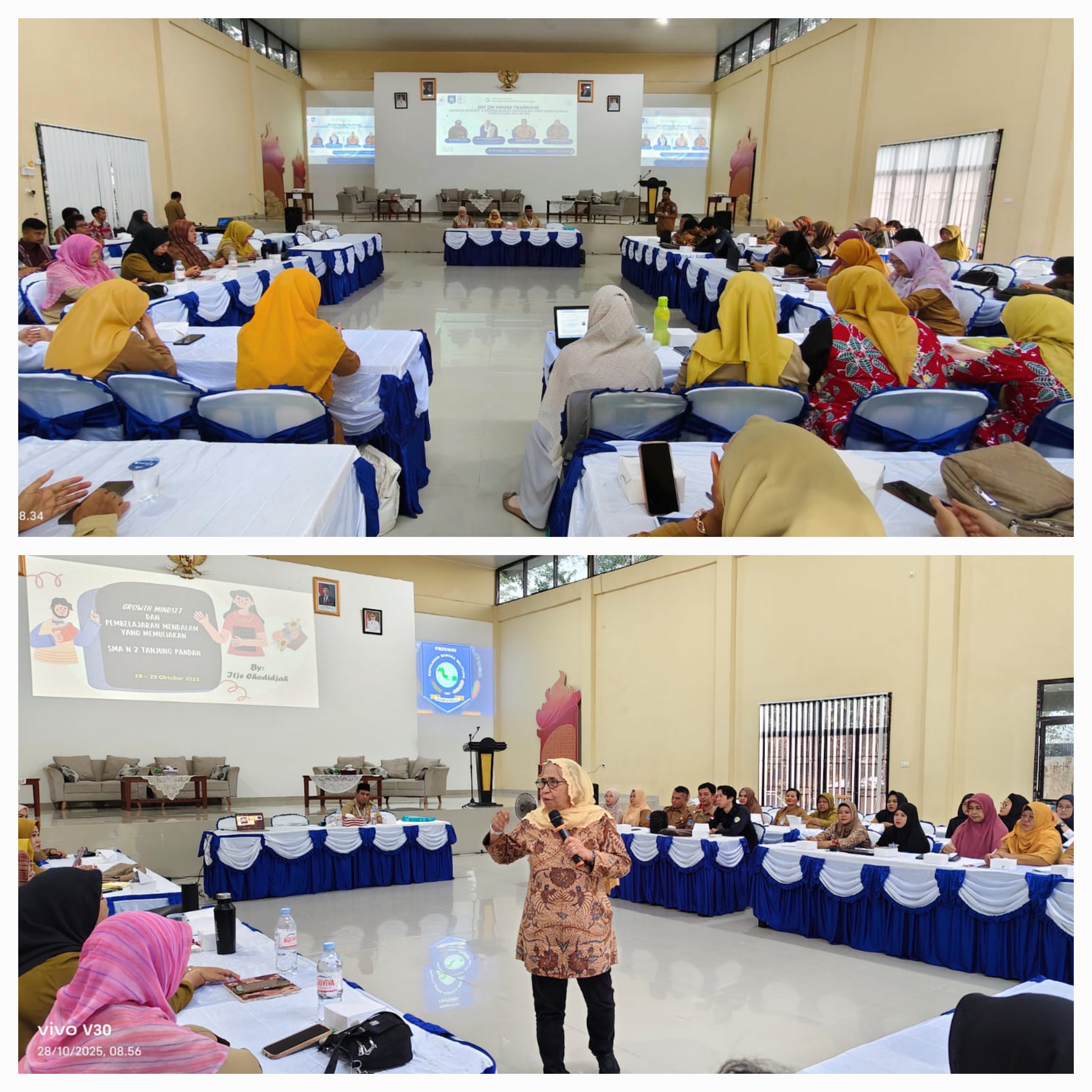 TANJUNGPANDAN – SMA Negeri 2 Tanjungpandan menyelenggarakan kegiatan In House Training (IHT) dengan fokus utama pada penguatan "Growth Mindset" (Pola Pikir Bertumbuh) dan "Pembelajaran Mendalam" yang memuliakan. Kegiatan IHT yang diikuti oleh seluruh guru SMAN 2 Tanjungpandan dan 34 orang undangan guru serta kepala sekolah jenjang SMA/SMK/SLB di kabupaten Belitung. Kegiatan berlangsung selama 2 hari dimulai hari Selasa 28 Oktober- Rabu 29 Oktober 2025 , bertempat di Gedung Serba Guna (GSG) SMA Negeri 2 Tanjungpandan. Kegiatan ini bertujuan untuk meningkatkan kompetensi profesional guru dalam mengimplementasikan kurikulum dan menghadirkan pengalaman belajar yang lebih bermakna bagi siswa di Belitung.