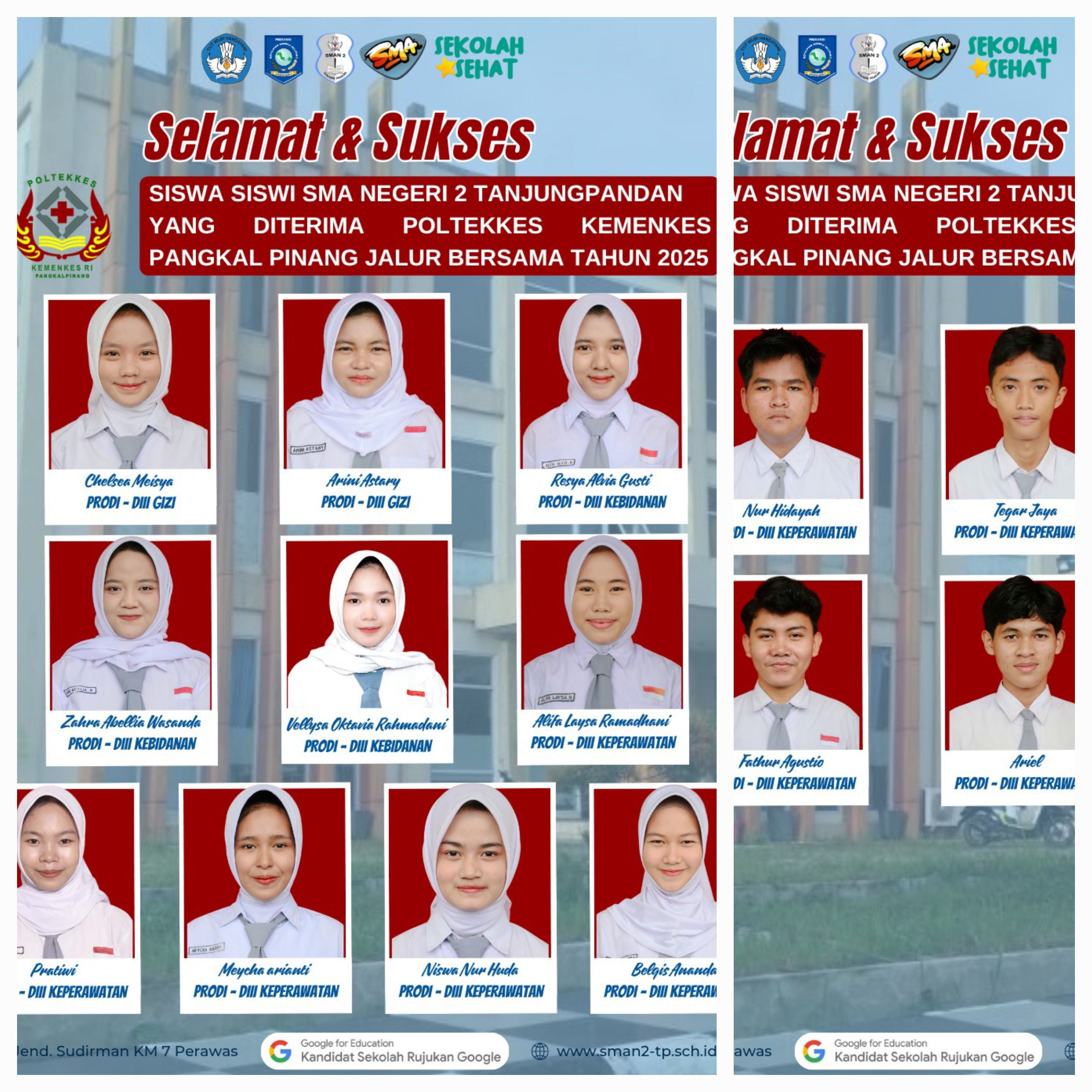 SELAMAT KEPADA 14 ORANG SISWA SISWI SMA NEGERI 2 TANJUNGPANDANLOLOS SIMAMA POLTEKKES KEMENKES PANGKAL PINANG JALUR BERSAMA TAHUN 2025