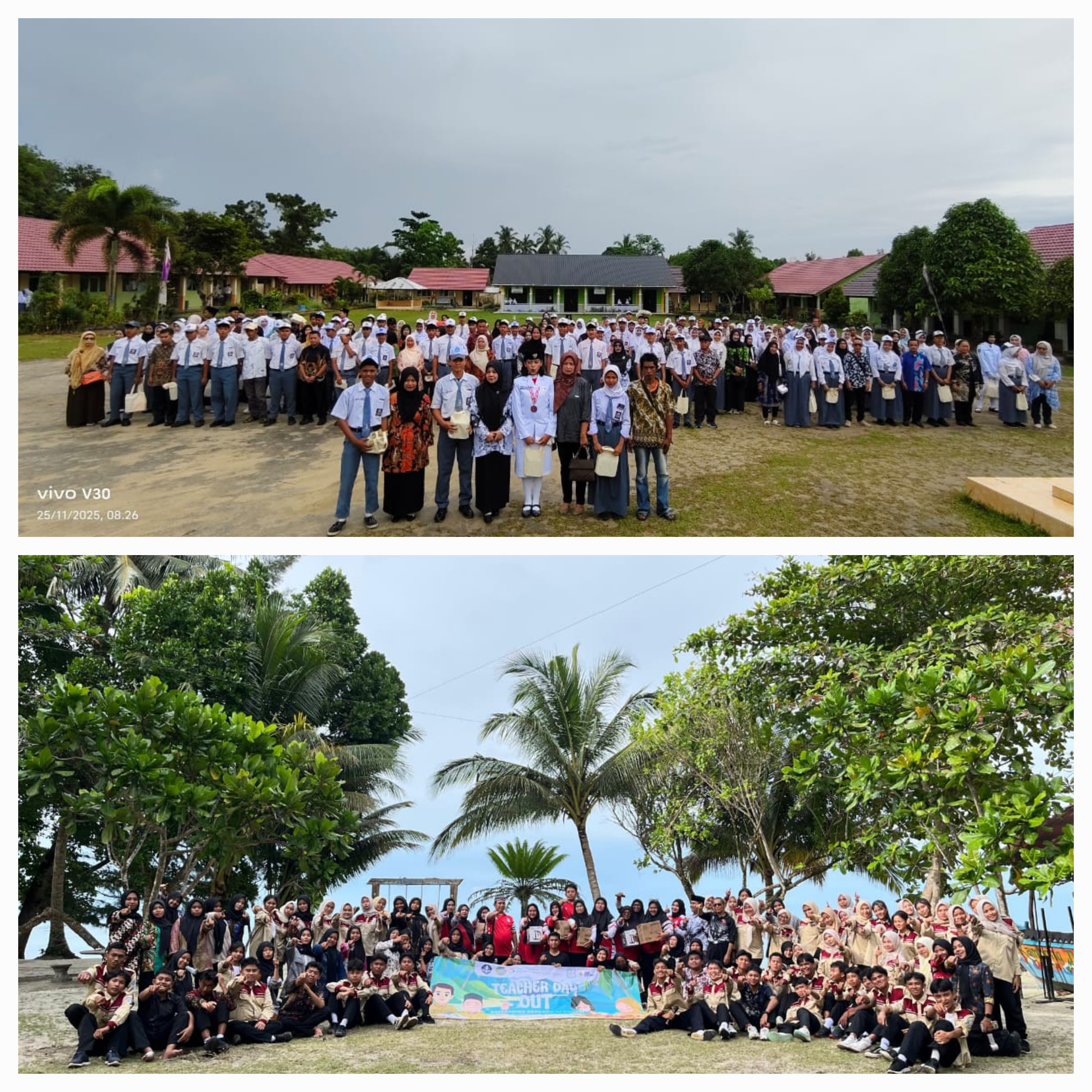 kemudian kegiatan dilanjutkan di Kampung Dedaun salah satu objek wisata Pamtai Tanjung tinggi tempat seluruh guru, MPK, dan OSIS melaksanakan kegiatan kebersamaan. Acara dibuka melalui pemotongan kue oleh Kepala Sekolah, Bapak Sudiyono, S.Pd. dan juga penyerahan sertifikat kategori guru serta cenderamata dari MPK dan OSIS, sebagai wujud terima kasih kepada para guru. dengan demikian, momen apresiasi ini juga menjadi pengingat pentingnya peningkatan apresiasi dan dukungan bagi guru agar kualitas pembelajaran terus berkembang.