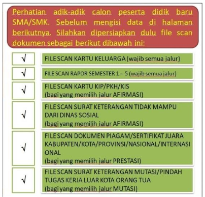 Tanjungpandan,Sesuai dengan Juknis PPDB SMA dan SMK Provinsi Kepulauan Bangka Belitung Nomor 420/583/DISDIK Tahun 2020.syarat dokumen pendaftaran PPDB SMA harus disiapkan sebelum mendaftar File Scan Dokumen dibuat dalam bentuk Pdf.